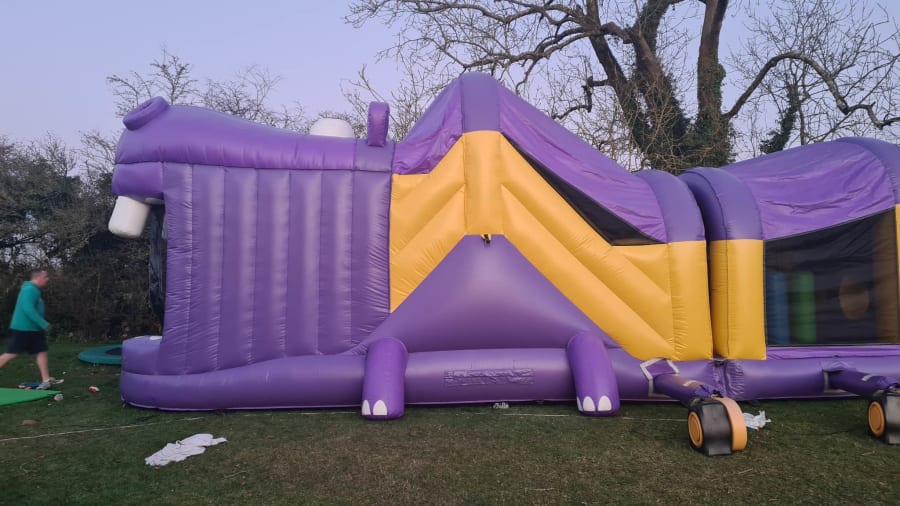 Bet you haven’t seen a purple hippopotamus sunbathing on anybodys lawn before???? Meet ‘Henry the Hippo’, the friendly hippo that is one of our most jaw dropping and entertaining inflatables that we hire. This inflatable is guaranteed to provide hours and hours of fun for your kids.