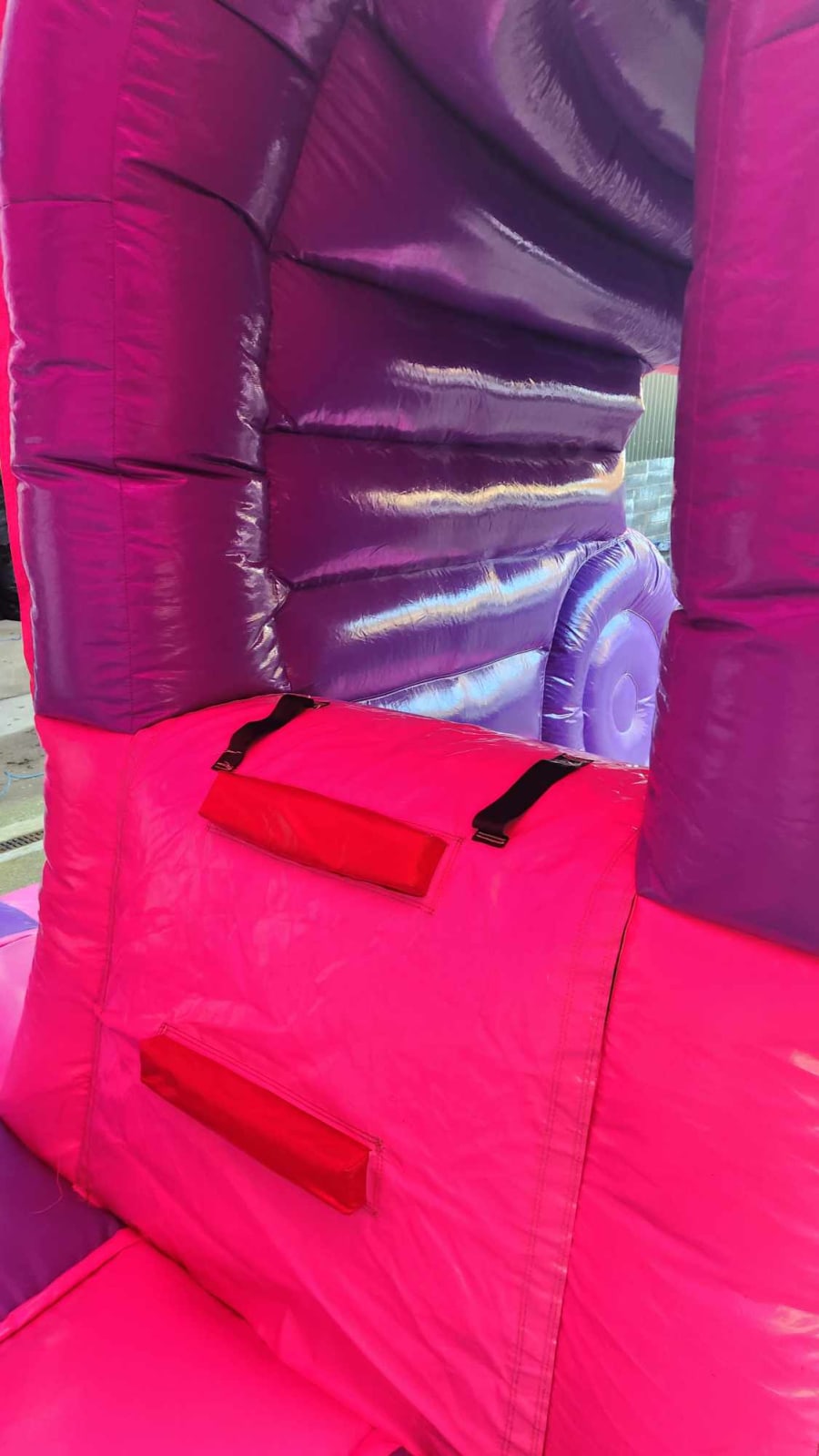 This trendy inflatable has a large bouncy area, with a climbing stairs that leads up to the top of an 8ft high internal slide. This is the only castle on the market that has an internal slide of this size. The castle is enclosed by netting.