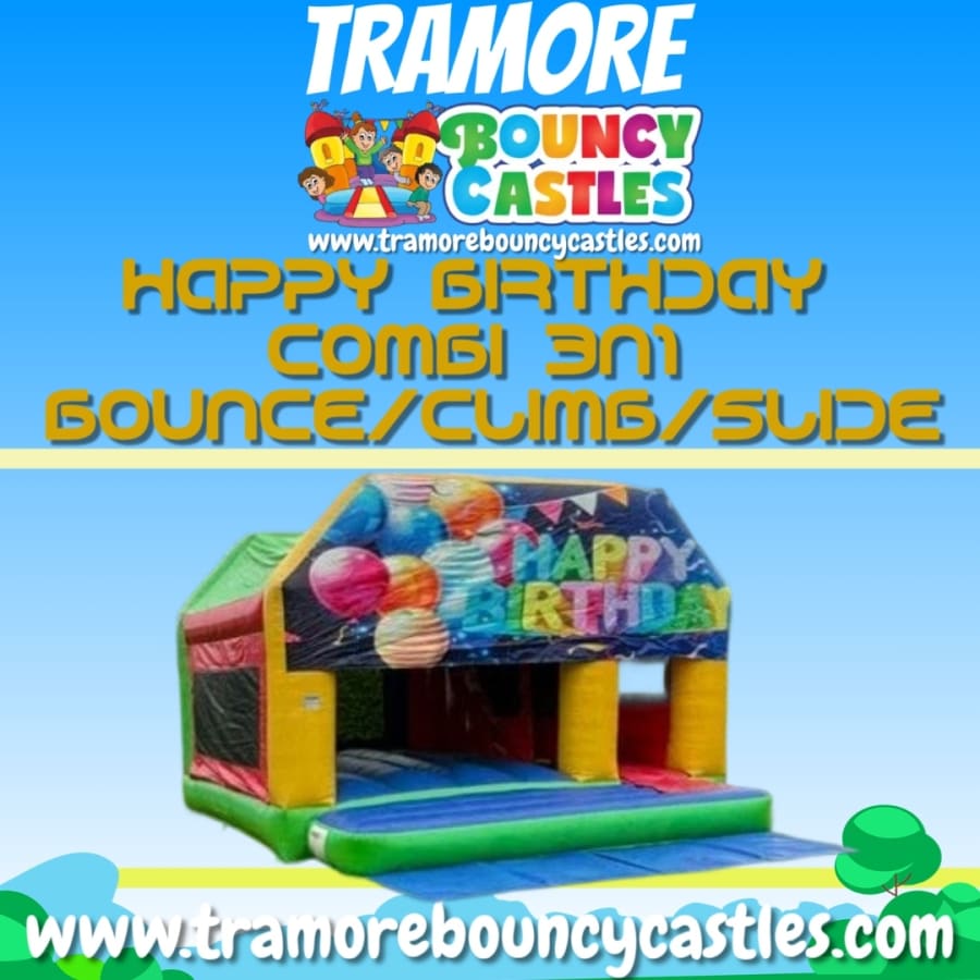 Step into a world of birthday magic with our Happy Birthday themed bouncy castle combi unit. Featuring a fully enclosed and safe spacious bouncy area with a slide to the side, it's suitable for children of all ages and perfect for birthdays, communions, confirmations, family fun days, and so much more!