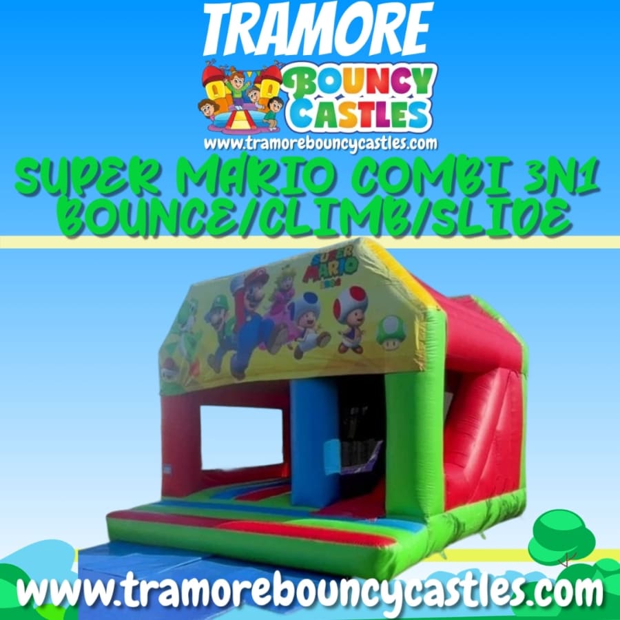 Step into a world of birthday magic with our SUPER MARIO themed bouncy castle combi unit. Featuring a fully enclosed and safe spacious bouncy area with a slide to the side, it's suitable for children of all ages and perfect for birthdays, communions, confirmations, family fun days, and so much more!