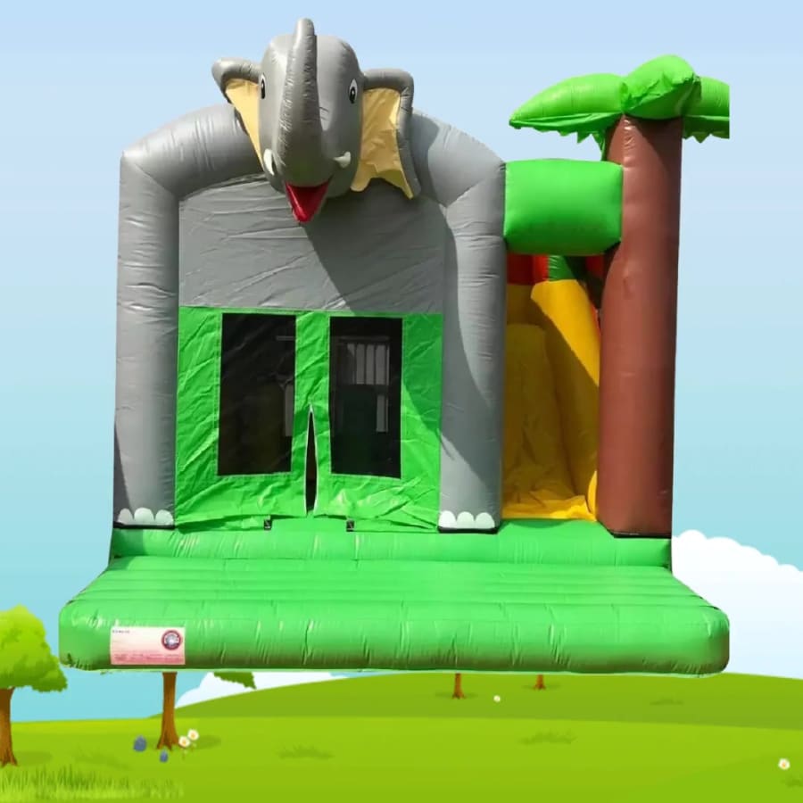 This castle was only introduced to our range of inflatables and instantly became a hit with all children. With impressive artwork and the massive Elephant inflatable head on the roof, this castle certainly stands out. It comprises of a large bouncy area with biff and bash blow-ups inside, a side slide and a rain cover. This really is a fun inflatable and is guaranteed to provide hours and hours of endless fun.